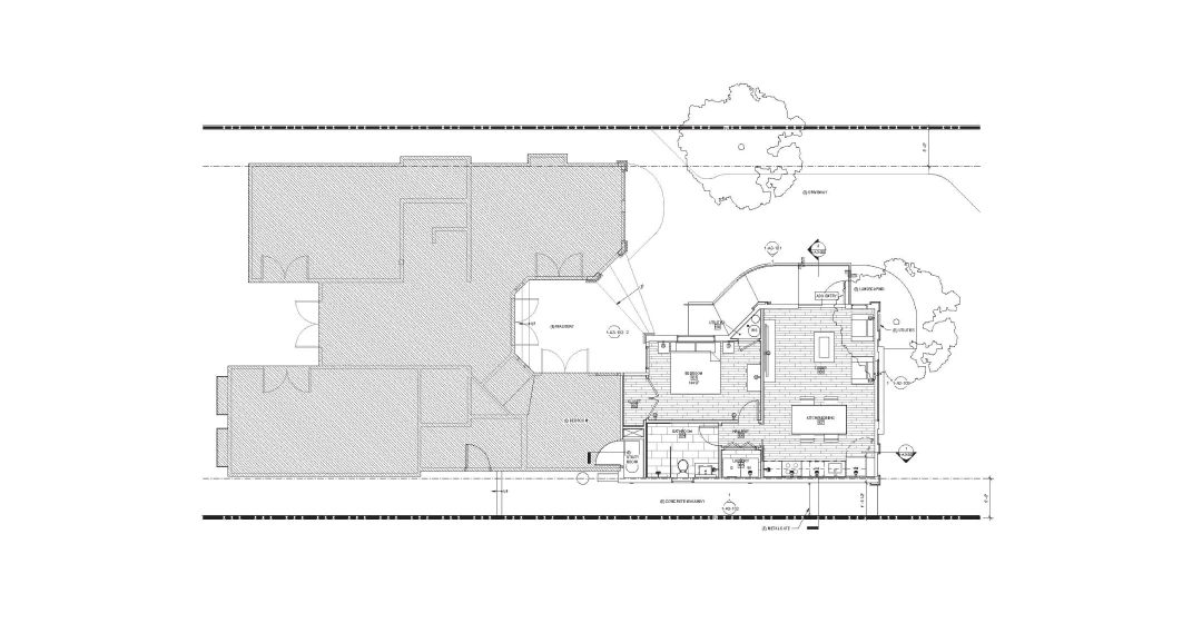 Program: 662SF garage conversion into a ADU and a new exterior concrete deck of 108sf