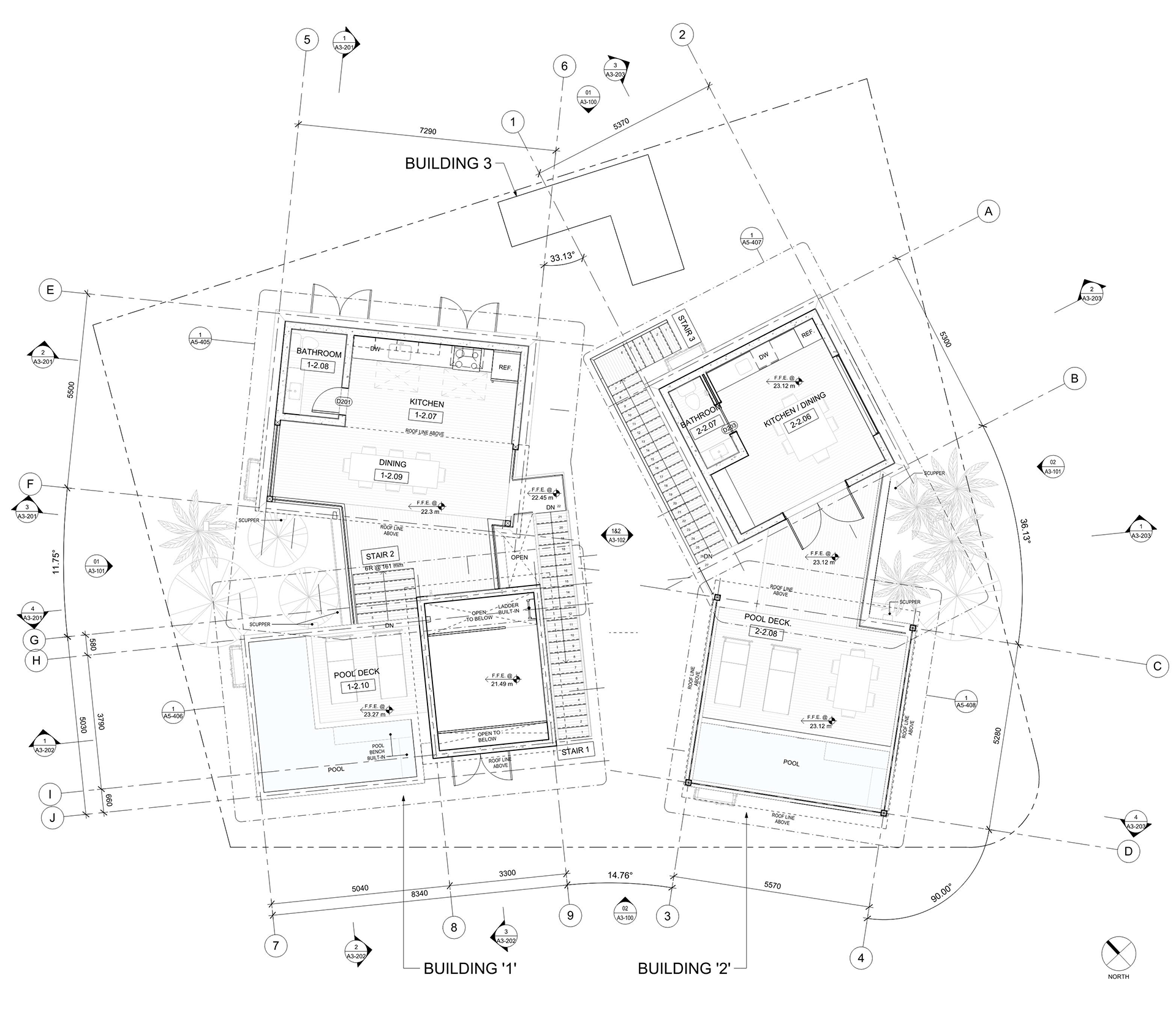 Program: two 2-story beachfront single-family homes with recreation areas