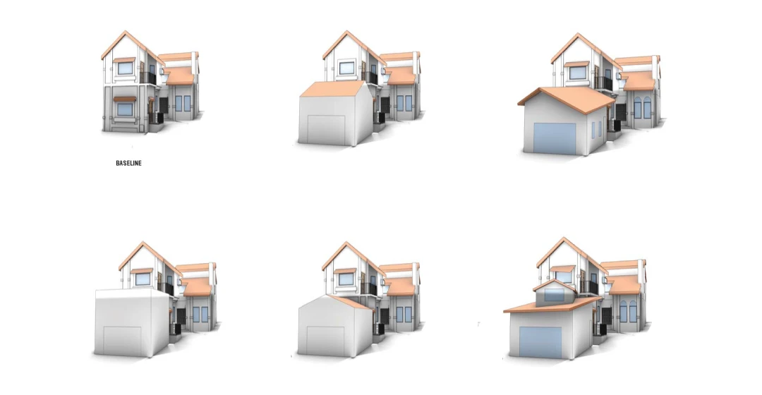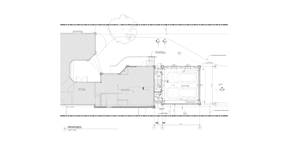 Program: new 520 SF 2-car garage attached addition to an existing single-family home
